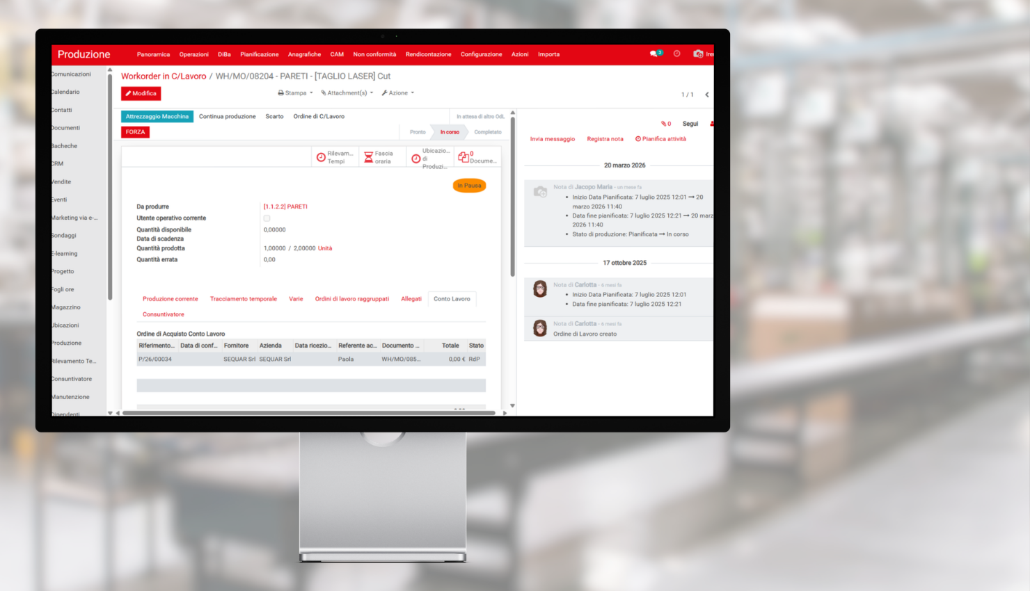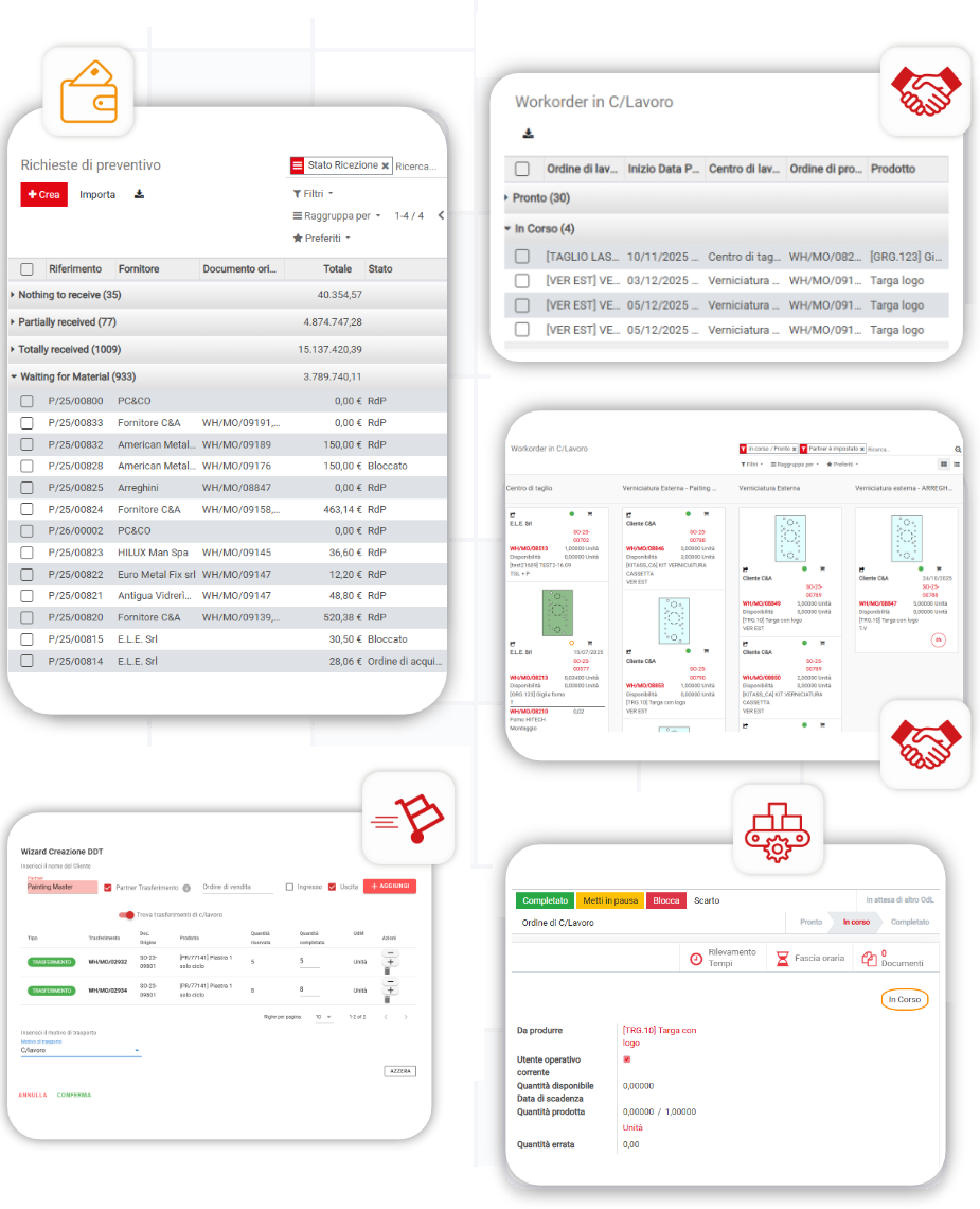 Quando i componenti che devono essere sottoposti a lavorazione esterna vengono inviati in conto lavoro, il sistema rileva automaticamente l'uscita della merce e di conseguenza esegue l'inizio lavorazione. In questo modo l'ufficio sarà sempre aggiornato sullo stato di lavorazione dell'ordine.